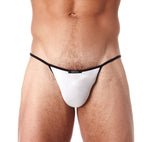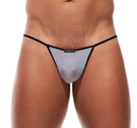 The VOYEUR collection string by Gregg Homme is designed in a hyperstretch microfiber with 'liquid touch' attributes - soft and thin, but very sturdy and immensely flattering to the body's outline. Details: T-back, seamless pouch, and the Gregg Signature sewn onto front center of a low-rise, 1/4-inch elastic waistband.