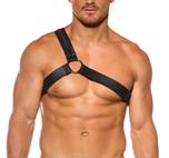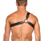 Treat yourself to the luxurious Thorn Harness. Perfection in faux leather. Large metal rings, a working zipper, and adjustable snaps, with fine red line detail. Extraordinary!