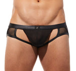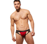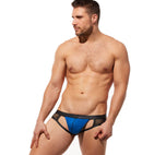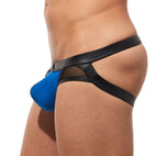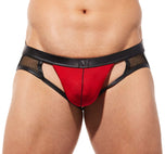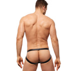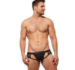 The Ring My Bell Jock is not designed for the faint of heart! From the faux leather waistband. To the semi sheer pouch. Or maybe it is the mesh or the built in adjustable cock ring. Or maybe, it's because they are the sexiest crotchless underwear around!