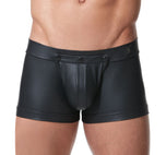 Gregg Homme introduces the CRAVE. The perfectly fitted faux leather collection that is breathable and stylish! These Crave boxers come with black snaps for its detachable pouch. The embossed Gregg Homme emblem is located on the right side of the 1 and a half-inch waistband.